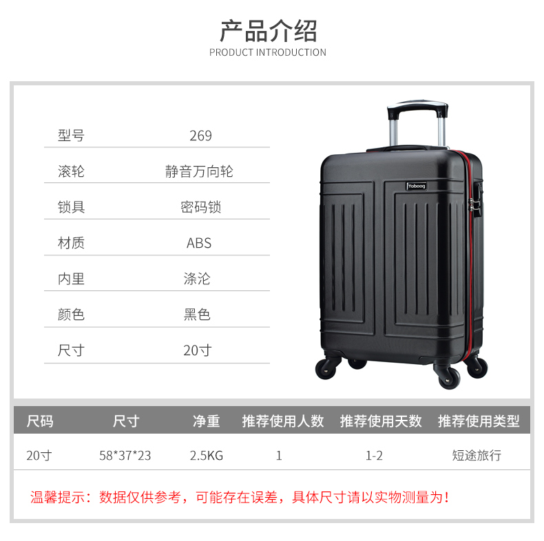 荐代发途帮(TOBOOG)简约商务黑色拉杆箱269 黑色 20寸