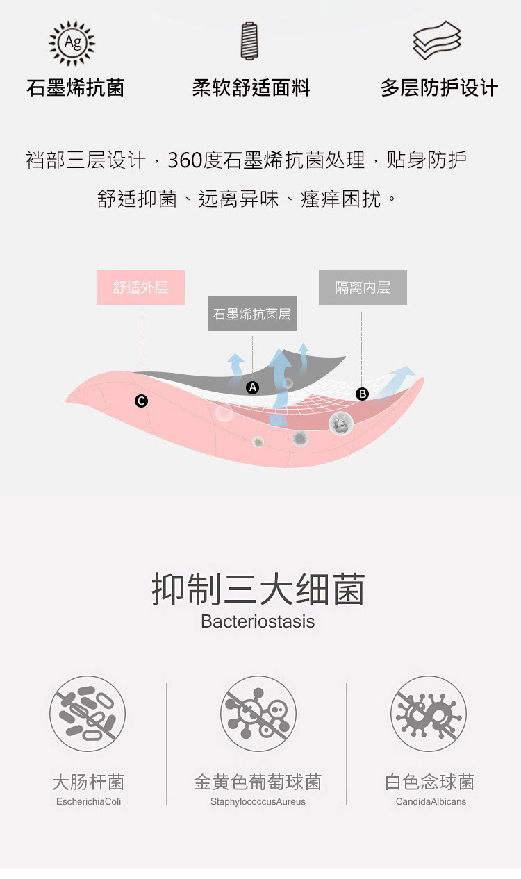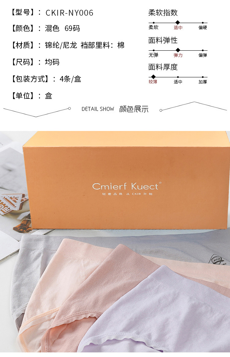 代发Cmierf Kuect(中国CKIR) 新款石墨烯无缝中腰导湿抗菌透气女士内裤(4条装) CKIR-NY006