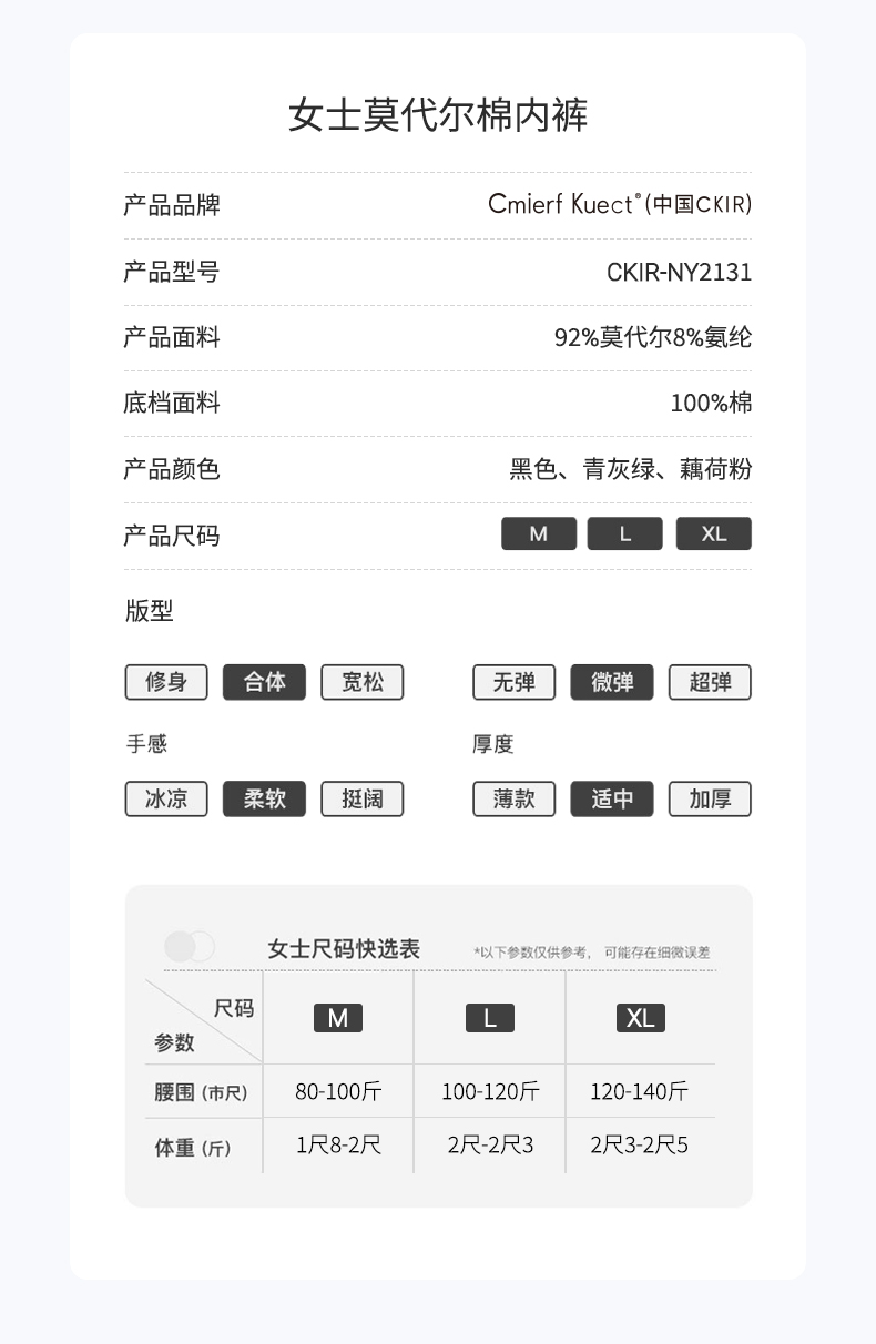 代发Cmierf Kuect (中国CKIR) 女士莫代尔面料内裤 CKIR-NY2131