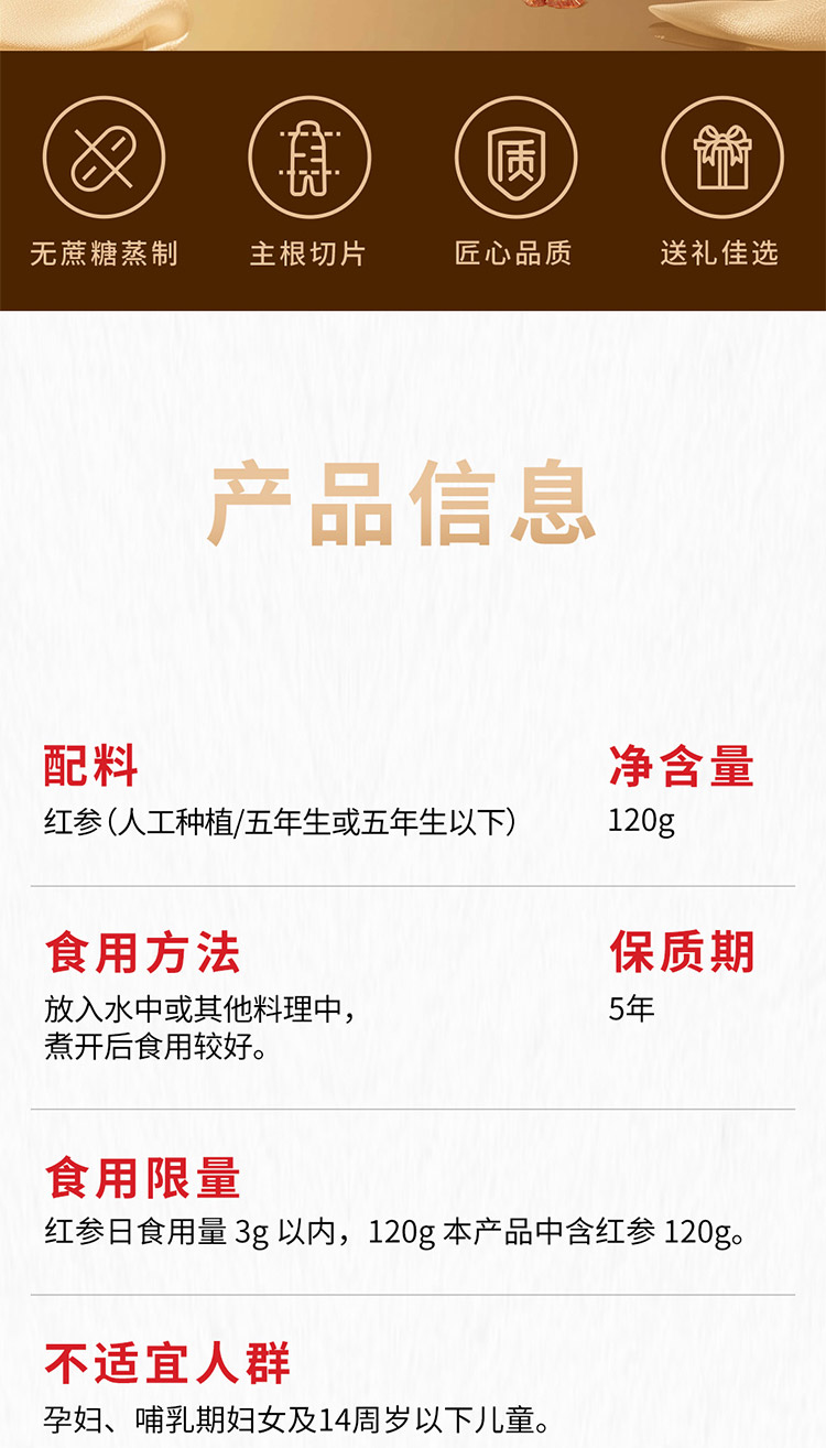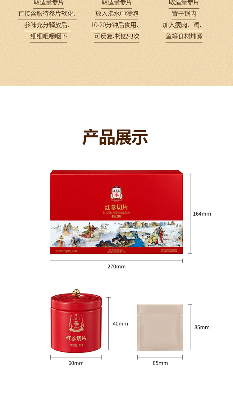 代发自营正官庄 红参切片120g(15g*8罐)