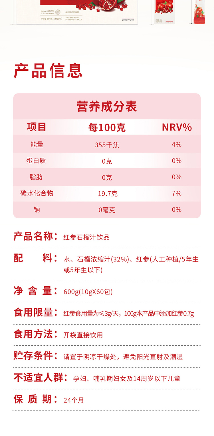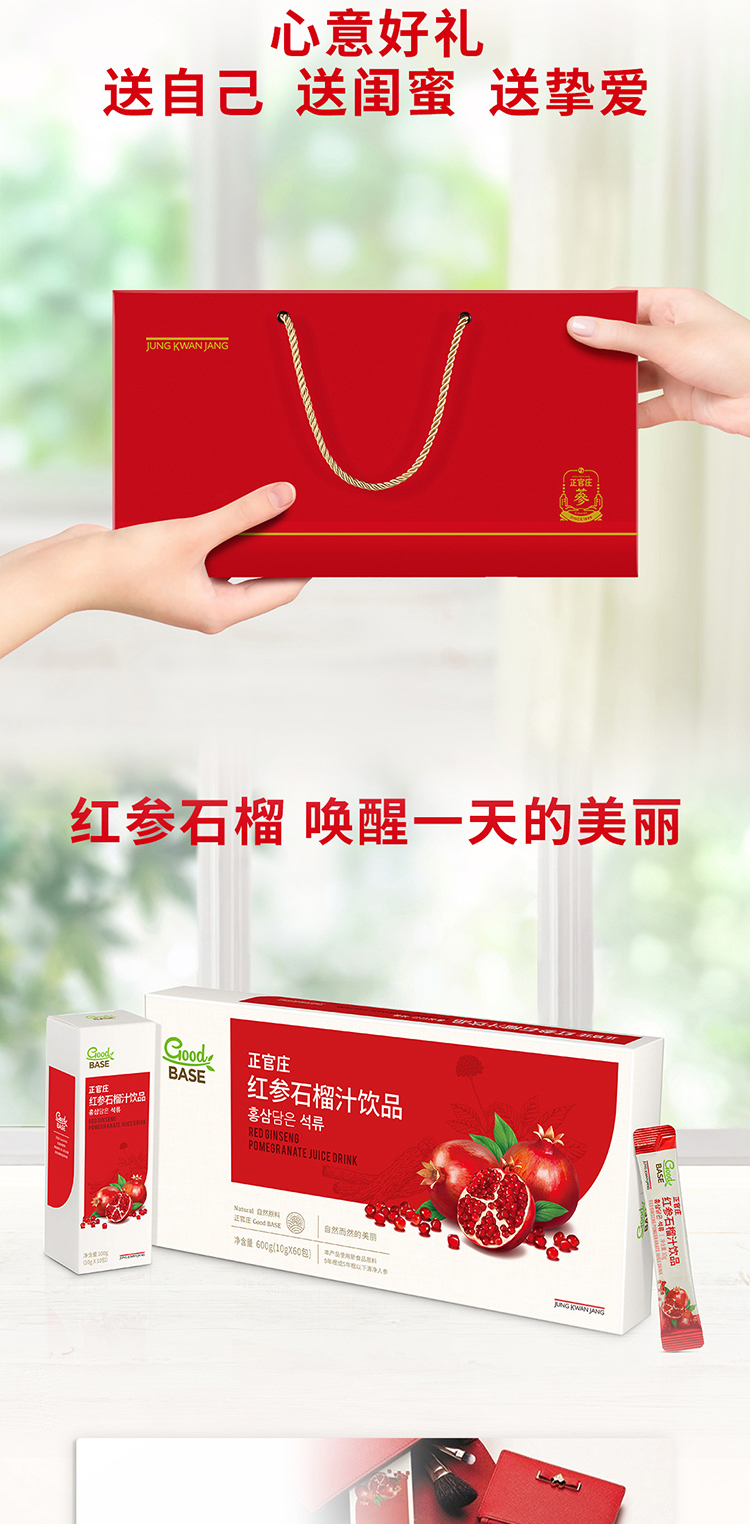 代发自营正官庄GoOdBASE红参石榴汁饮品10g*60包