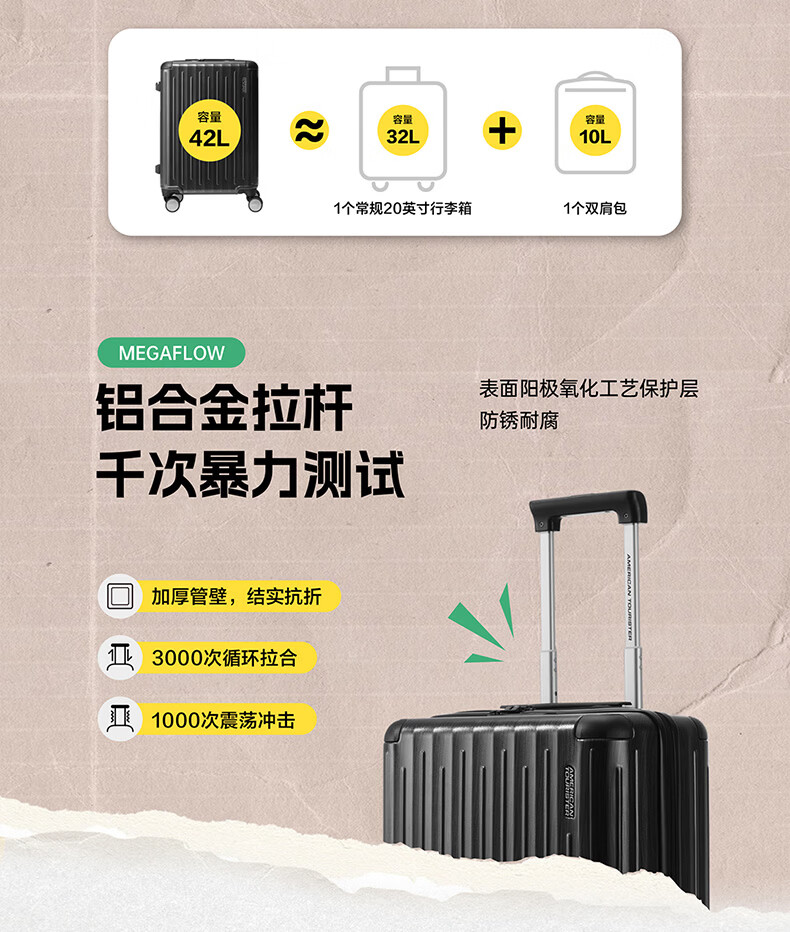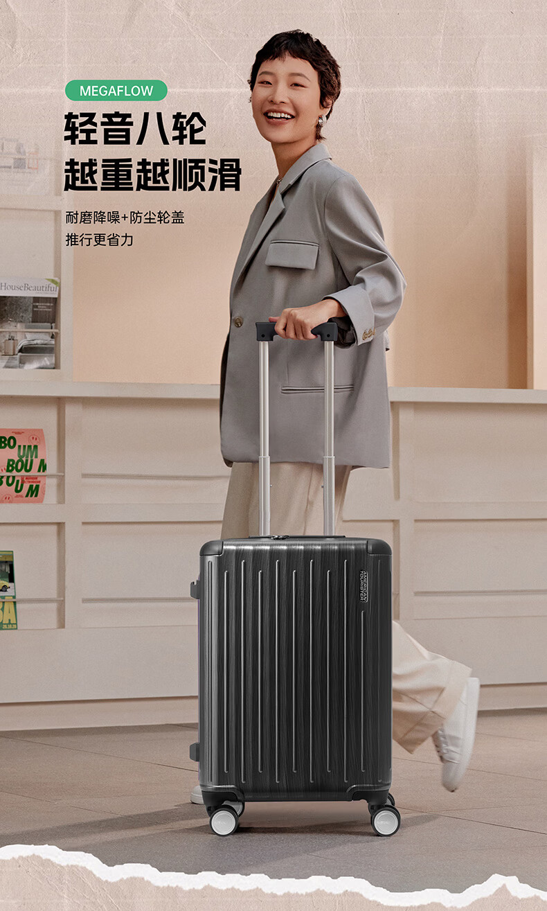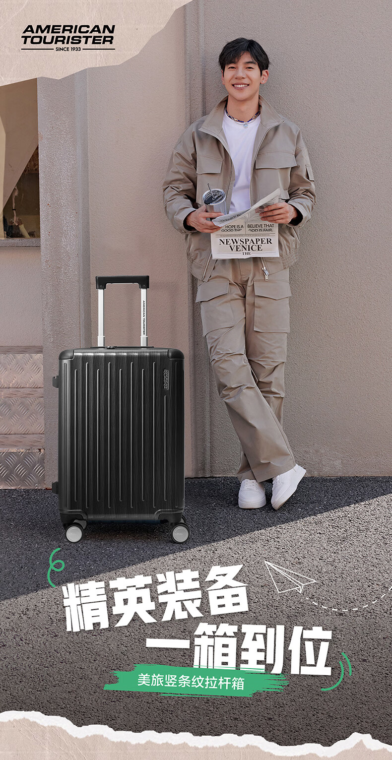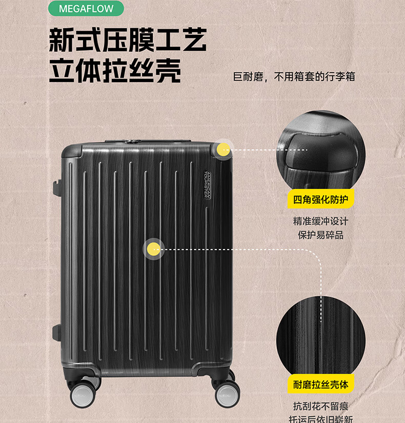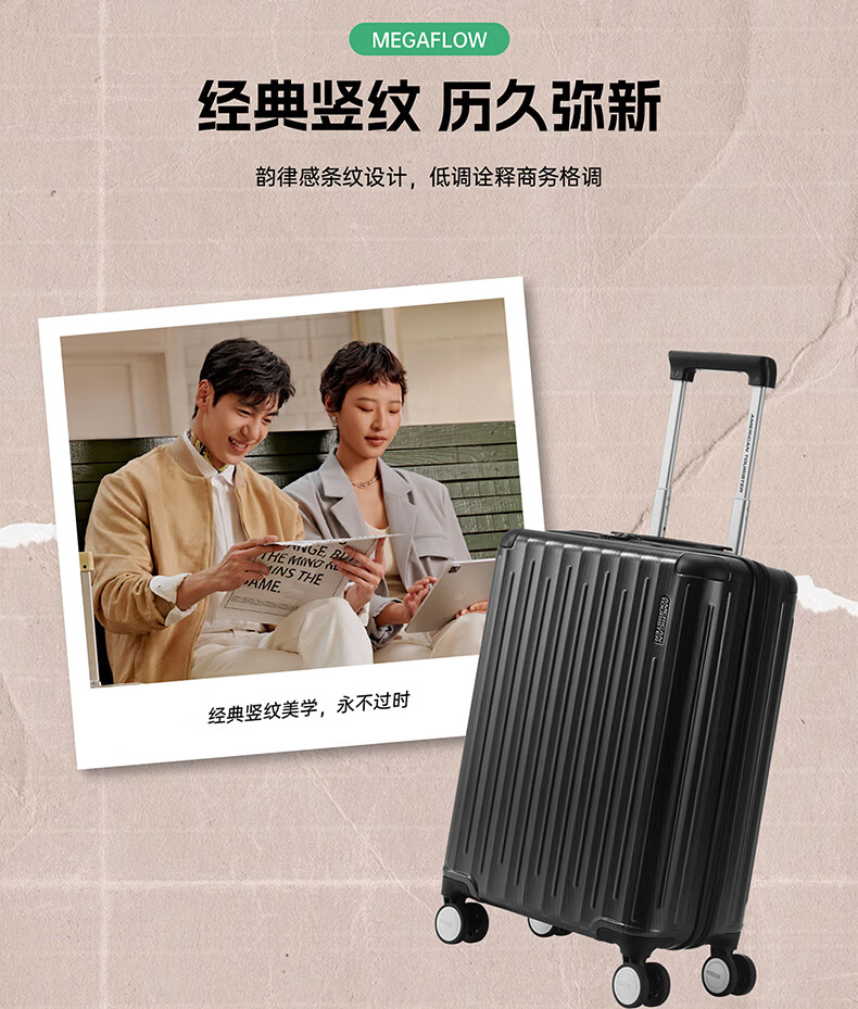 代发美旅(AMERICAN TOURISTER)经典竖纹拉杆箱 20英寸可登机行李箱PC材质密码箱出差 NB0*18001 炭灰色 20英寸
