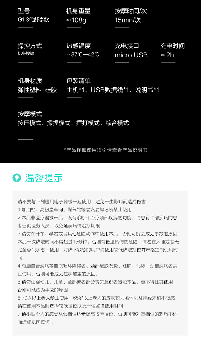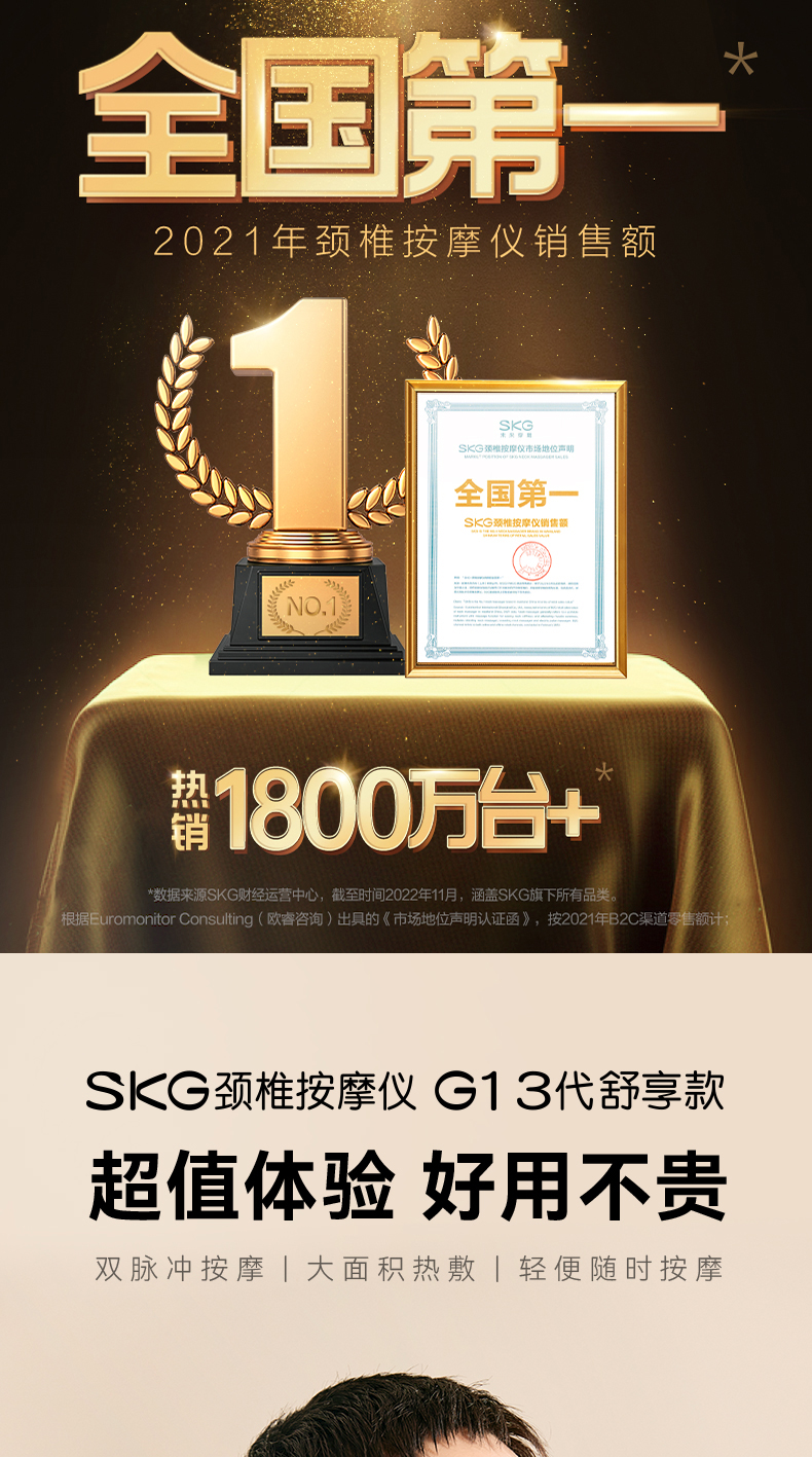 荐代发SKG颈椎按摩器G1-3舒享灰色